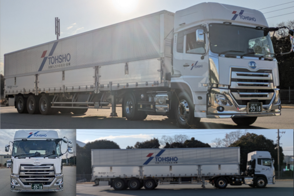 豊橋営業所にトラクタが納車されました! お知らせ 株式会社トーショー | 2026.01.20 豊橋営業所にトラクタが納車されました。 3軸ウイングセミトレーラを連結することで全長16mとなり、大量の荷物を効率的に輸送し活躍してくれます。安全運転を最優先に中部エリアの空の下、凛とした力強い姿で走行中!! です。 以上