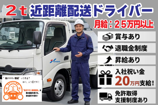 2t平近距離配送ドライバー(固定給制)