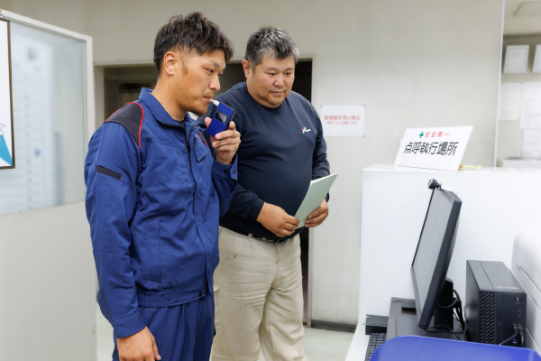 朝出発するドライバーの乗務前点呼を行っていただきます